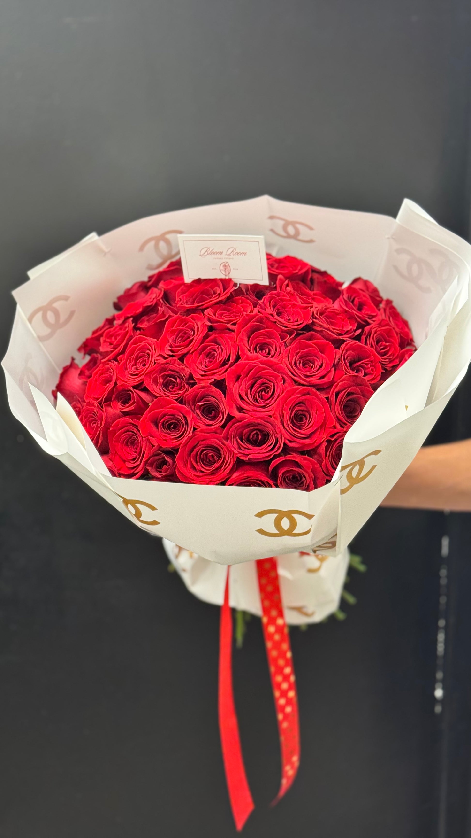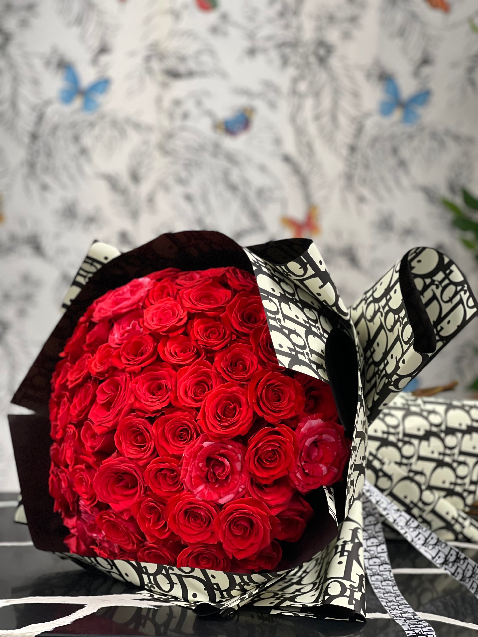 Indulge in the epitome of luxury and romance with our exquisite Wifey Bouquet. Crafted to captivate the heart, this opulent arrangement boasts 50 extra-long stem Ecuadorian roses, meticulously selected to exude elegance and passion. Available in a palette of ravishing reds, delicate pinks, and pristine whites, each bloom whispers tales of love and admiration.