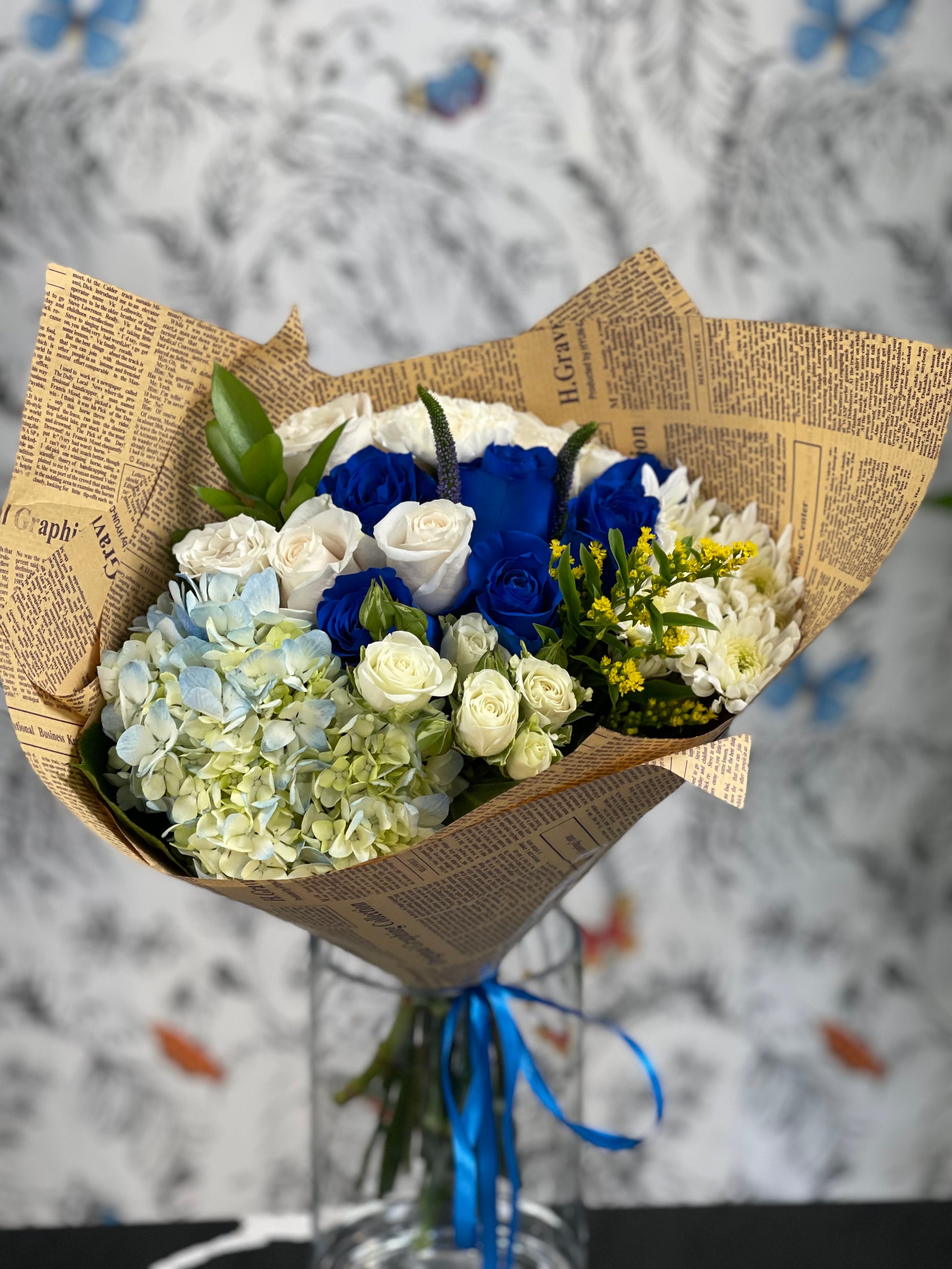 Our "Good News" Mixed Bloom Bouquet is great for the birth of a baby or baby shower gift! Also, a great was to send congratulations for a birthday or graduation. An assortment of roses and designer's choice florals brought together to form an exquisite flower arrangement. Convey your every emotion of gratitude and appreciation to your family, friend, or loved one with this hand-crafted bouquet!