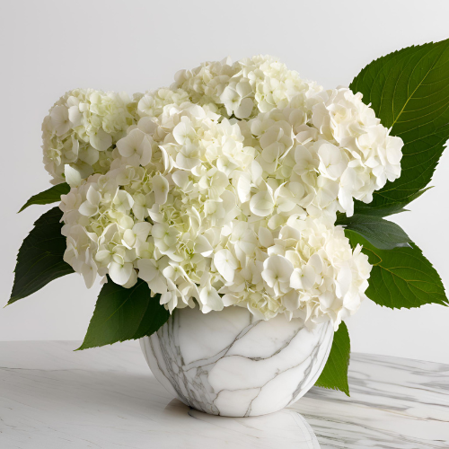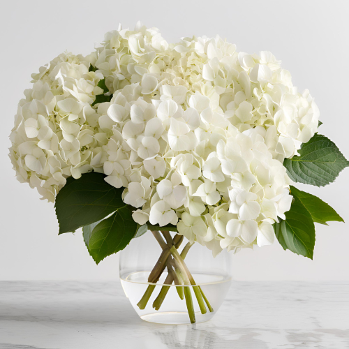 The Hydrangea Vase offers a timeless, peaceful elegance with a stunning array of white hydrangeas. Available in two beautiful options, this arrangement is perfect for adding a serene touch to any space or occasion. Choose from the standard design in a clear glass vase for a classic, minimalist look, or opt for the premium version, presented in a sophisticated marble ceramic vase for a more luxurious feel.